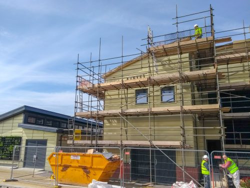 On the inside, the first electrical works have been installed, PV cables have been terminated, and mains water supply connections have been made. The Kelda Technology digital shower systems have also been installed and some internal painting has begun, so it is starting to become habitable!