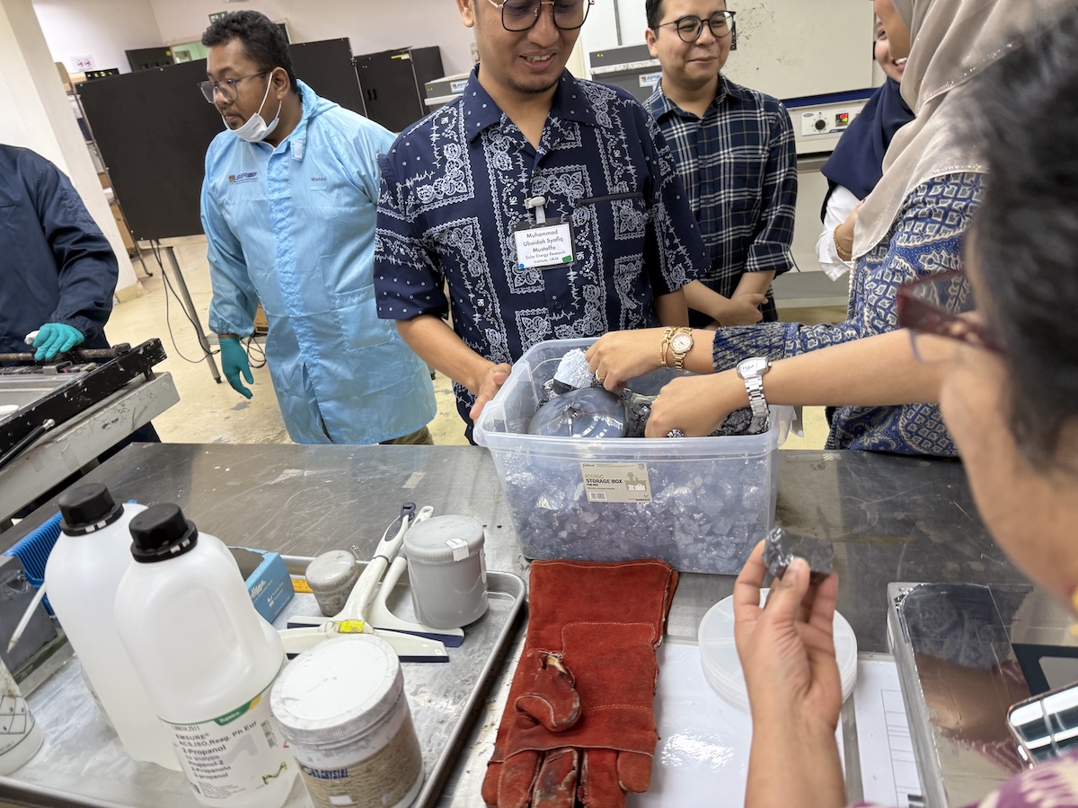 In the afternoon, we all took a bus to visit Zenviro‘s solar recycling facility on the outskirts of Kuala Lumpur. Malaysia’s first solar panel recycler, Zenviro buys decommissioned silicon panels and then sells the recycled materials. The process of the panels being ground by the machinery and the crushed glass, silicon, and silver emerging on the other side was a surprisingly fast one.